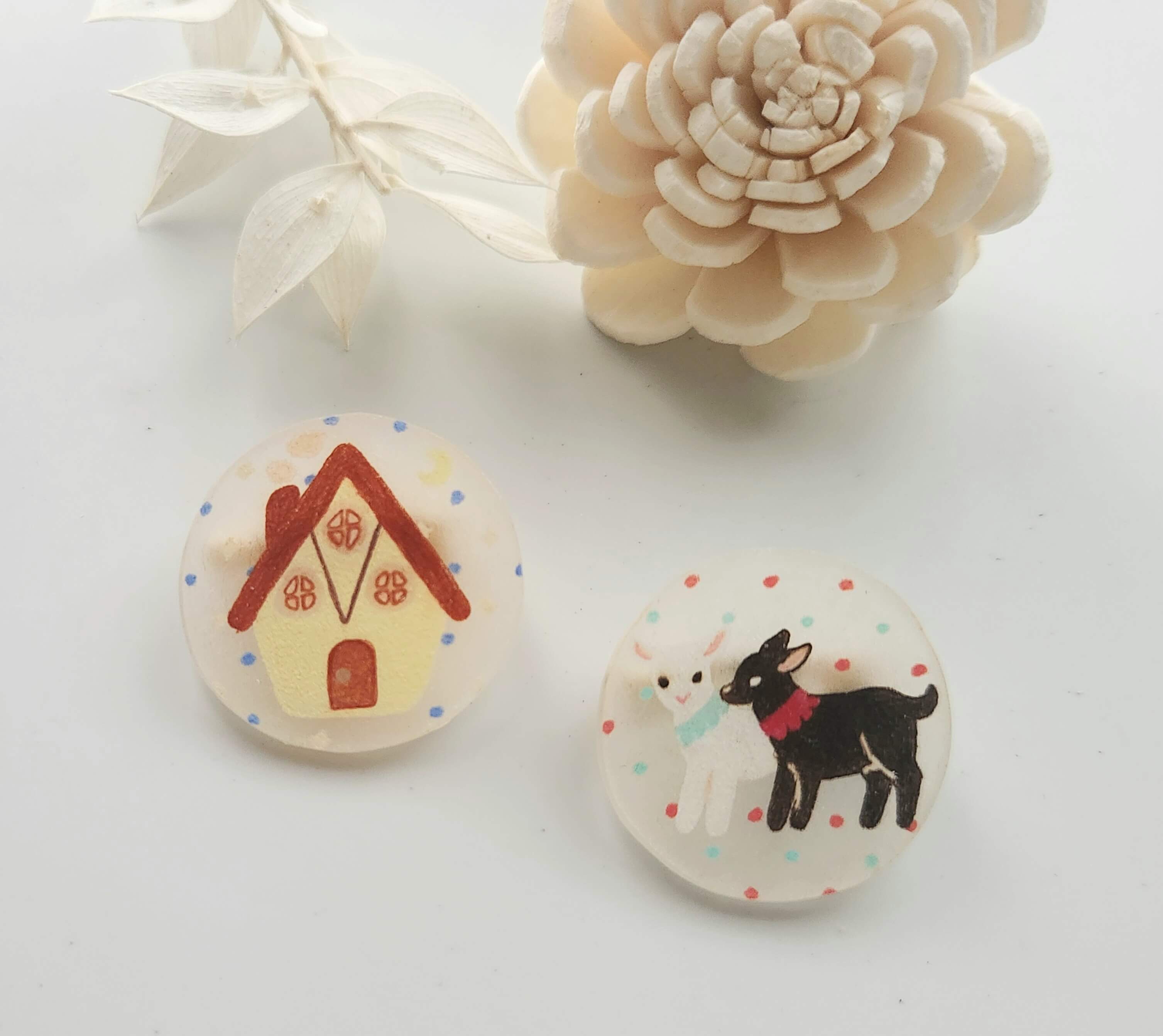 すべて色鉛筆で描いており、プラバンアクセサリーやポストカードなどの製作をしています