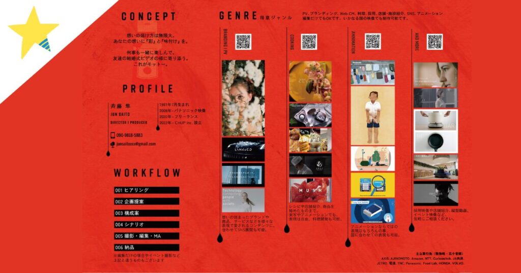 国内外の企業案件を多数手がけ、企画から撮影・編集まで一貫対応。人・モノ・想いを大切に、レンズ越しに本質を捉える表現を追求しています。 -